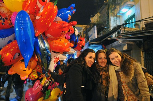 Các du khách nước ngoài cũng xuống phố đón giao thừa của người Việt.Lễ hội múa lân trên đường phố trung tâm Sài Gòn làm nhiều người thích thú.Đúng 12g, pháo hoa rực sáng góc trời phía đường hầm sông Sài Gòn (hầm Thủ Thiêm, quận 2).