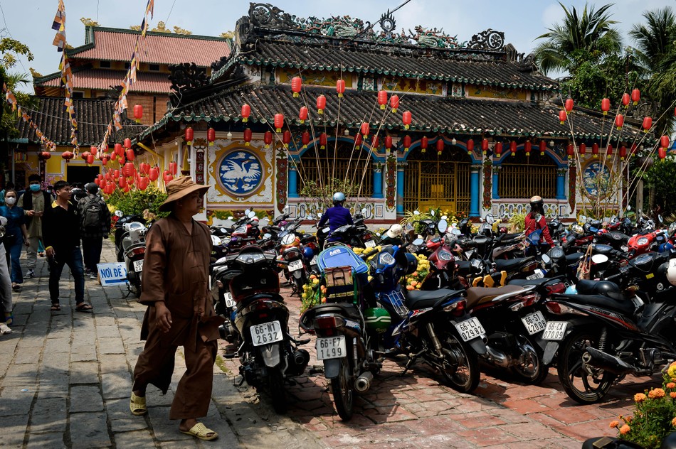 | Cảnh chùa bình yên, không tấp nập người viếng như mọi năm |