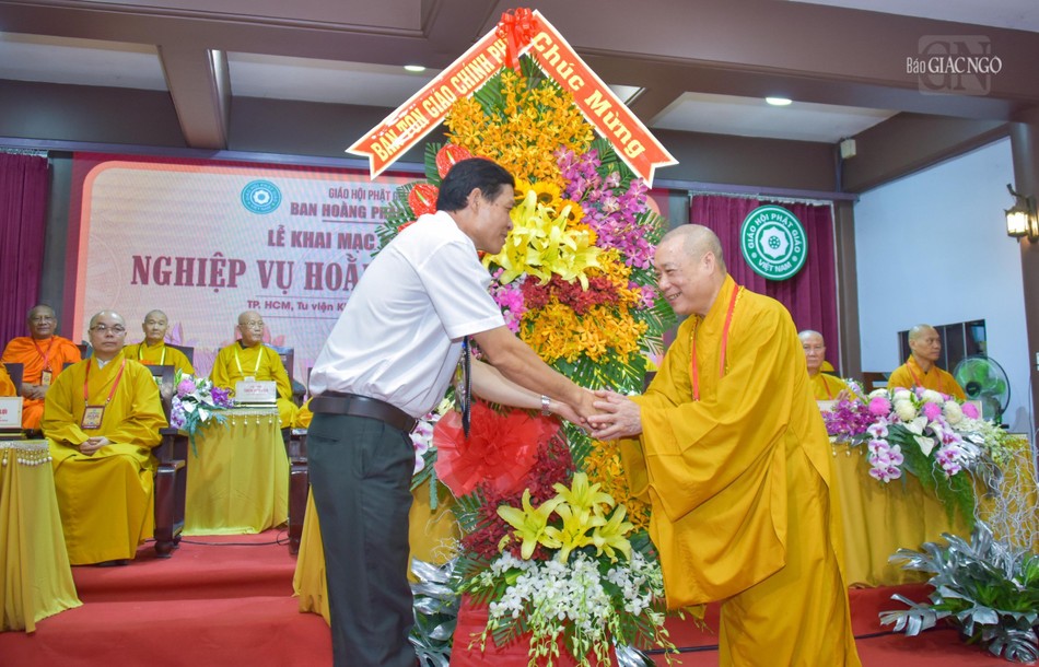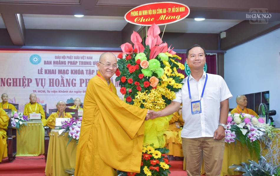 Chứng minh có Trưởng lão Hòa thượng Thích Thiện Nhơn, Phó Pháp chủ, Chủ tịch Hội đồng Trị sự; Trưởng lão Hòa thượng Thích Như Niệm, Phó Thư ký Hội đồng Chứng minh; Trưởng lão Hòa thượng Thích Thanh Hùng, Ủy viên Thường trực Hội đồng Chứng minh; chư tôn đức Phó Chủ tịch Hội đồng Trị sự: Thượng tọa Thích Đức Thiện (Tổng Thư ký Hội đồng Trị sự); Hòa thượng Thích Huệ Thông (Trưởng ban Pháp chế T.Ư); chư tôn đức Văn phòng II T.Ư; Ban Thường trực Ban Hoằng pháp T.Ư; Tăng Ni Ban Hoằng pháp các tỉnh thành miền Đồng, Tây Nam Bộ, cùng đại diện các cơ quan T.Ư, TP.HCM tham dự.