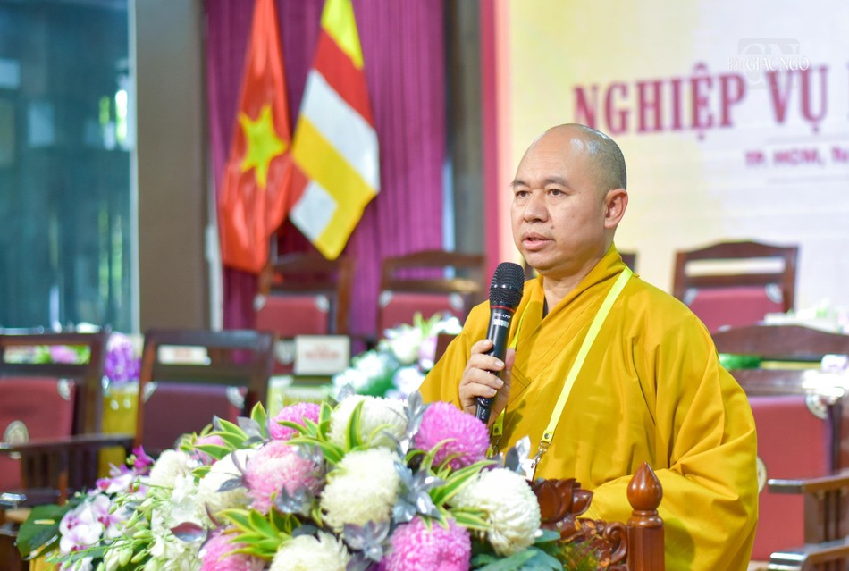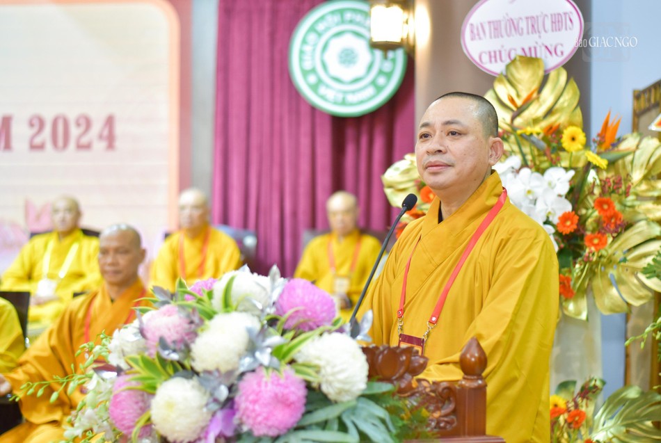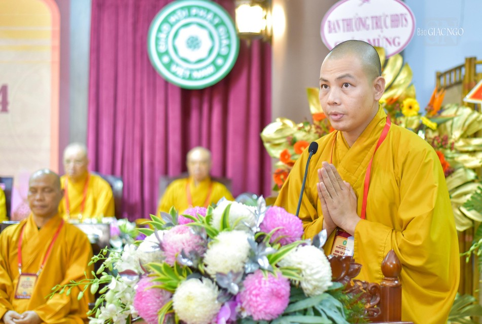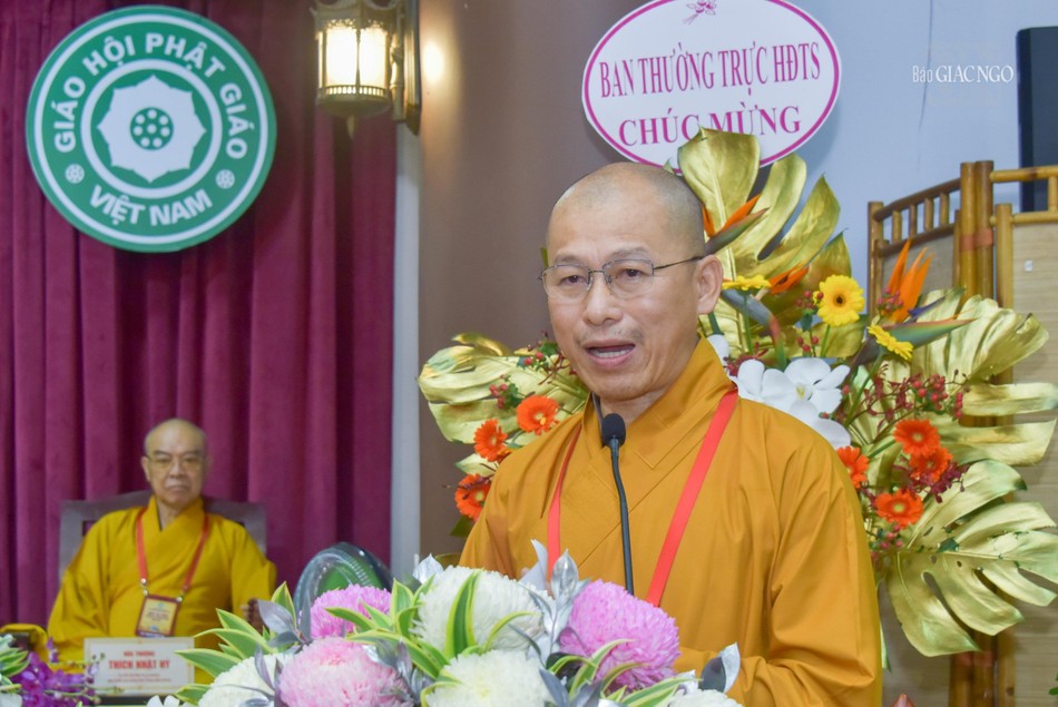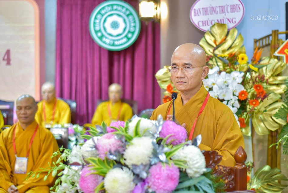 Thượng tọa Thích Minh Nhẫn báo cáo tóm tắt công tác tổ chức |