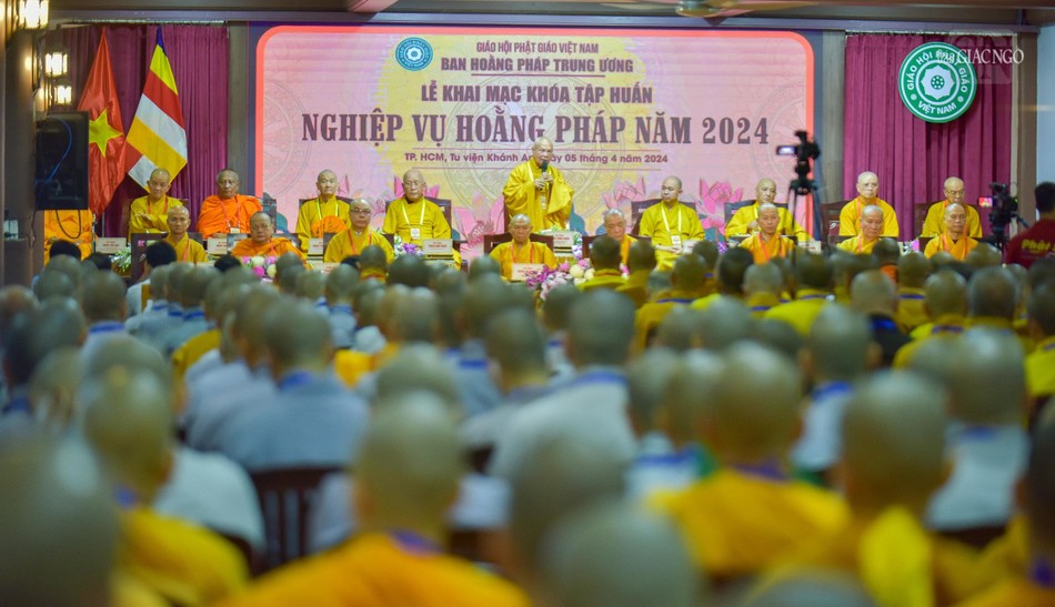 GNO - Sáng nay, 5-4, Ban Hoằng pháp T.Ư GHPGVN khai mạc Khóa tập huấn nghiệp vụ Hoằng pháp năm 2024 tại tu viện Khánh An (Q.12, TP.HCM), có 550 Tăng Ni các tỉnh thành miền Đông, miền Tây Nam Bộ tham dự.