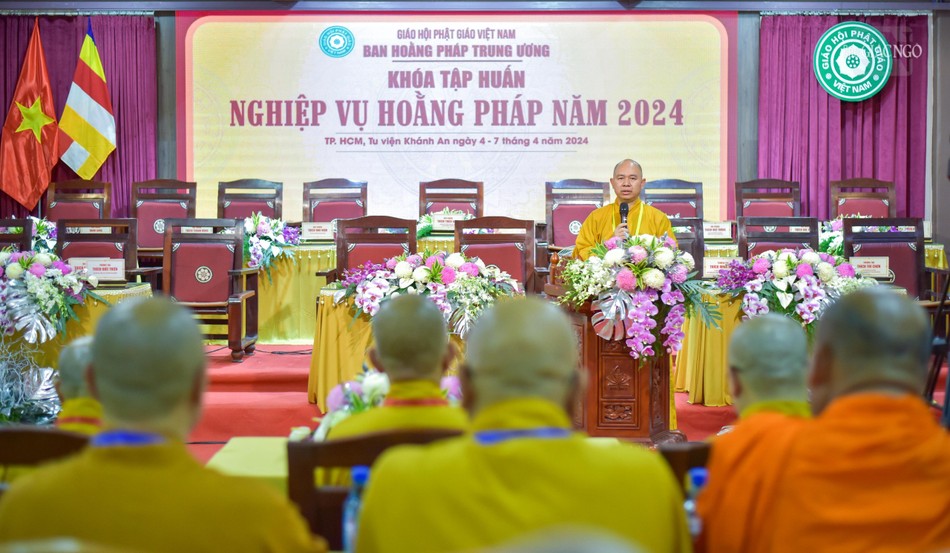 Sau lời cảm tạ của Thượng tọa Thích Thiện Quý, Phó ban Hoằng pháp T.Ư, chư tôn đức bắt đầu khóa tập huấn với thuyết trình của Thượng tọa Thích Đức Thiện về những Phật sự trọng tâm trong thời gian tới của GHPGVN, đặc biệt về kế hoạch tổ chức Đại lễ Vesak Liên Hiệp Quốc năm 2025; Hòa thượng Thích Huệ Thông thuyết trình về Hiến chương tu chỉnh lần thứ VII.