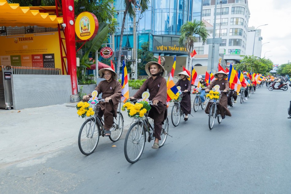 GNO - Nhóm Phật tử trẻ tu viện Khánh An (Q.12, TP.HCM) đã hân hoan tổ chức diễu hành xe đạp với tinh thần hoan hỷ, phụng sự và lan tỏa thông điệp từ bi, vào sáng 4-5.