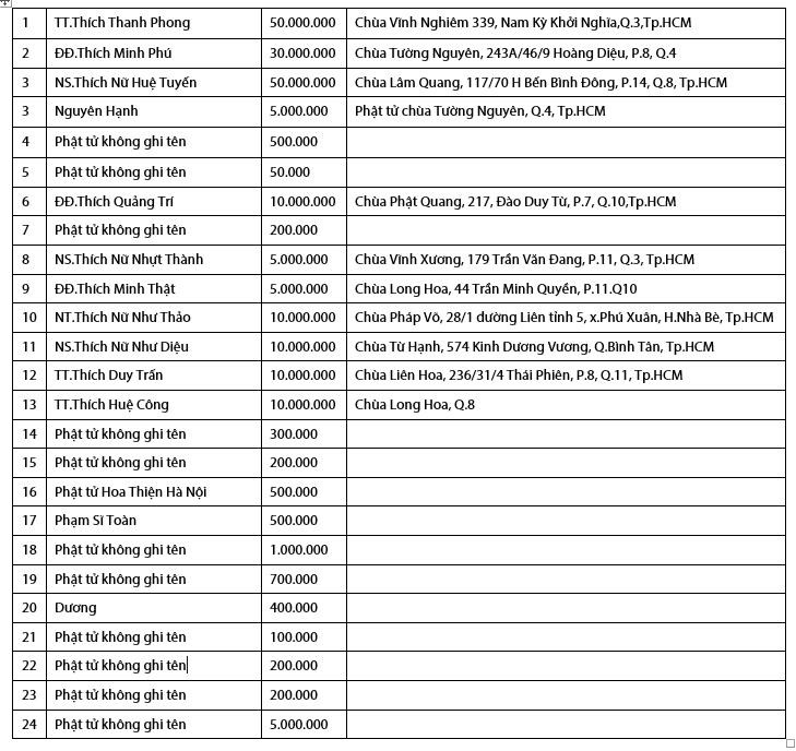 Danh sách đóng góp sẽ được tiếp tục cập nhật trên Giác Ngộ Online |