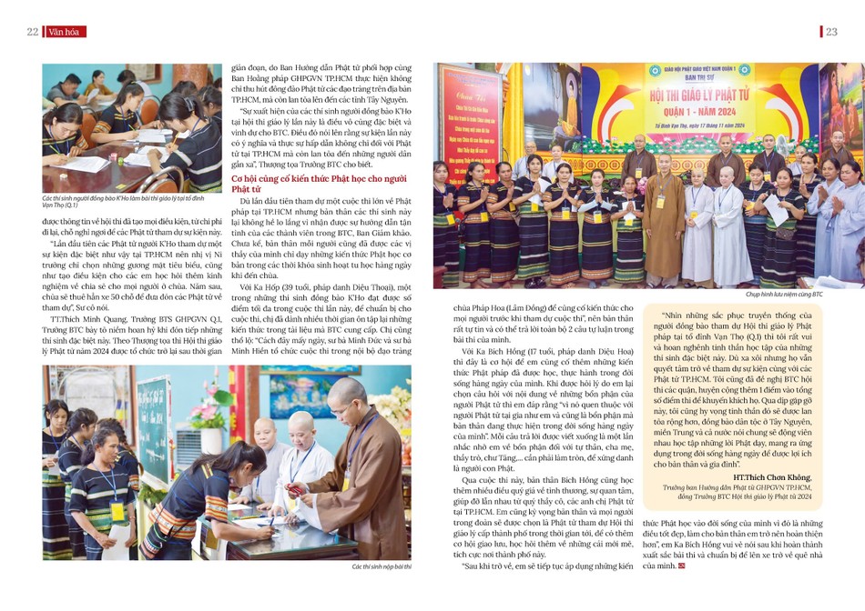 “Sự xuất hiện của các thí sinh người đồng bào K’Ho tại hội thi giáo lý lần này là điều vô cùng đặc biệt và vinh dự cho Ban Tổ chức. Điều đó nói lên rằng sự kiện lần này có ý nghĩa và thực sự hấp dẫn không chỉ đối với Phật tử tại TP.HCM mà còn lan tỏa đến những người dân gần xa”, Thượng tọa Trưởng ban Tổ chức cho biết.