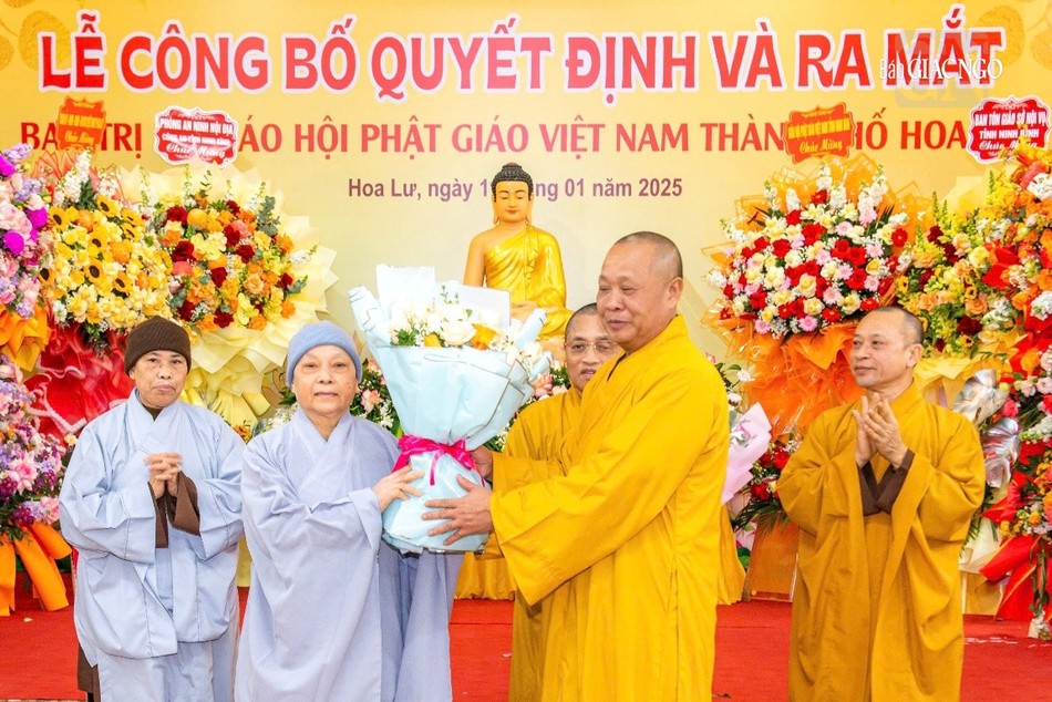 Tại buổi lễ, tân Ban Trị sự GHPGVN TP.Hoa Lư nhiệm kỳ 2021-2026 được công bố theo Quyết định số 15/QĐ-BTS ngày 1-1-2025, gồm 28 thành viên, trong đó Thường trực có 11 vị và 17 Ủy viên Ban Trị sự, do Thượng tọa Thích Thanh Dũng, sinh năm 1967, Phó Trưởng ban Trị sự kiêm Trưởng ban Từ thiện xã hội GHPGVN tỉnh Ninh Bình làm Trưởng ban kiêm Trưởng ban Tăng sự.