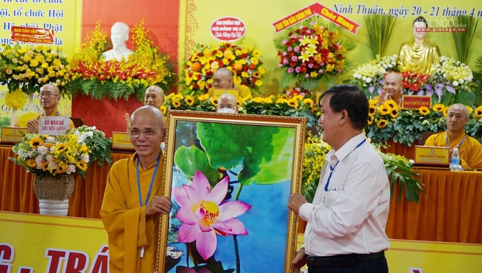 Theo đó, Hòa thượng cho biết Ban Trị sự GHPGVN tỉnh Ninh Thuận được thành lập từ năm 1992, sau khi tỉnh Thuận Hải được tách thành 2 tỉnh Ninh Thuận và Bình Thuận. Trải qua 6 nhiệm kỳ, Phật giáo tỉnh nhà luôn luôn kế thừa truyền thống đoàn kết, hòa hợp gắn liền với dân tộc, phát huy nguồn trí tuệ tập thể của Tăng Ni, Phật tử, khéo léo vận dụng phương tiện, tùy duyên bất biến trong mọi hoàn cảnh, nắm bắt kịp thời từng bước phát triển của đất nước và thời đại; phát huy vai trò Phật giáo tinh nhà, góp phần xây dựng GHPGVN phát triển không ngừng và vững mạnh trong sự hội nhập toàn cầu của đất nước.