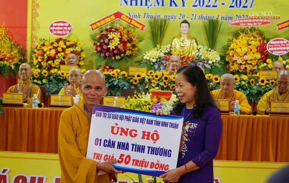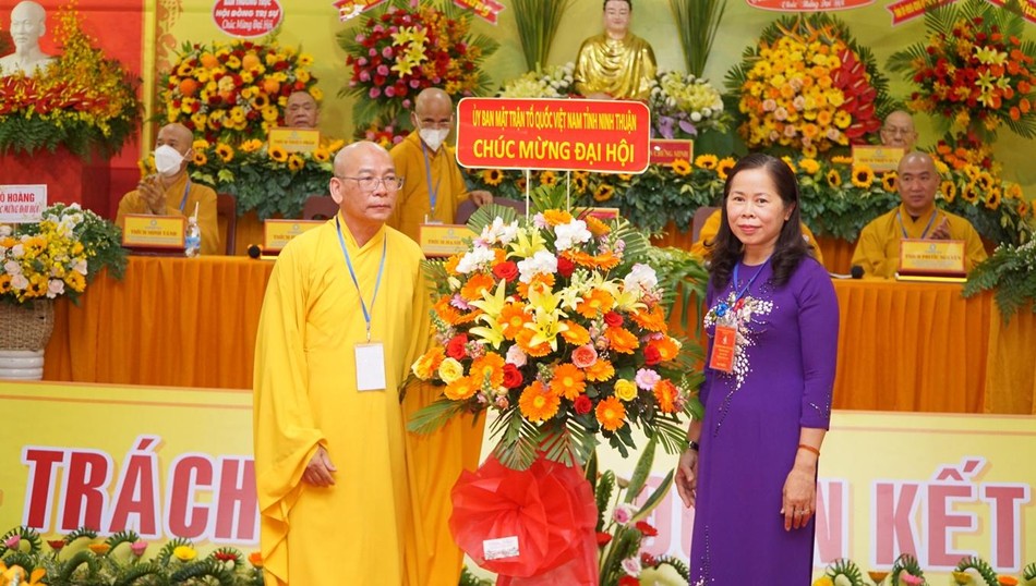 Bà Phạm Thị Bích Hà, Phó Chủ tịch Ủy ban MTTQVN tỉnh Ninh Thuận ghi nhận và đánh giá cao hoạt động tích cực của Giáo hội tỉnh Ninh Thuận, đồng thời tin tưởng trong thời gian tới Tăng Ni, Phật tử Ninh Thuận phát huy thế mạnh phát triển Phật sự làm đẹp quê hương Ninh Thuận. Bà chúc mừng tân Ban Trị sự và bày tỏ tin tưởng Phật giáo tỉnh sẽ phát triển hơn nữa trong thời gian tới.