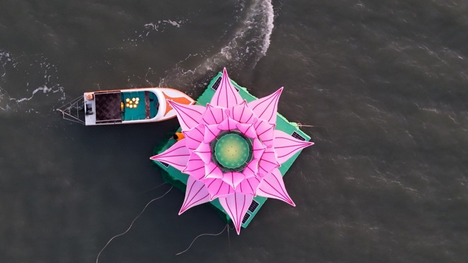 Hình ảnh Lễ thắp sáng 7 hoa sen trên Đầm Nại: