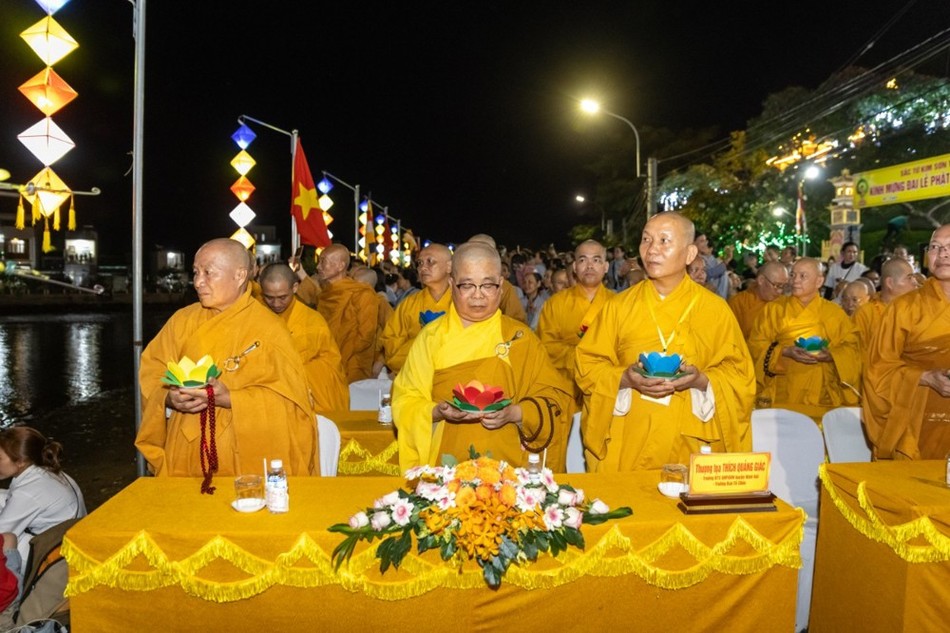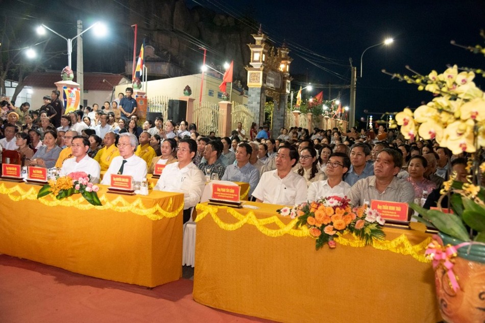 Tại buổi lễ, chư tôn đức cùng quan khách đã trang nghiêm cử hành nghi thức dâng trầm và thắp sáng 7 đóa hoa sen và cử hành nghi thức thả hoa đăng trên Đầm Nại.