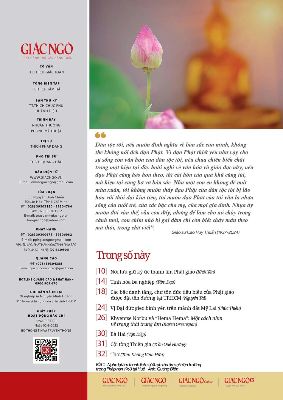 Mời bạn đọc cùng tìm hiểu về Nơi lưu giữ ký ức thanh âm Phật giáo này qua bài viết của tác giả Khôi Yên đăng trên chuyên mục Điểm nhìn - Báo Giác Ngộ số 1324, ra ngày 17-10.