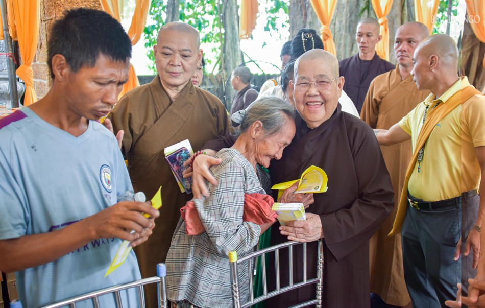 Chia sẻ các phần quà đến người dân tại chùa Linh Sơn |