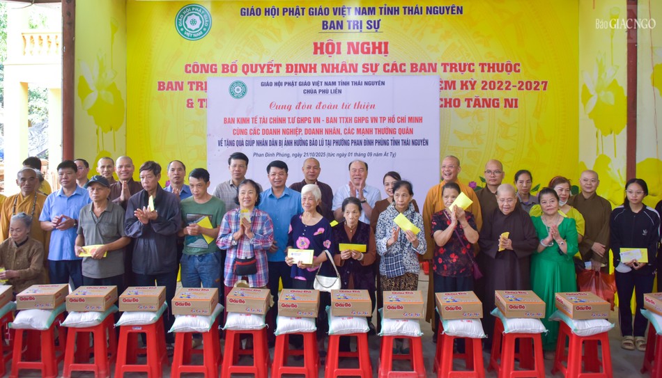 Được biết, hôm nay đoàn đã thăm và trao tặng 1.000 phần quà đến bà con tỉnh Thái Nguyên, tại các chùa: Phù Liễn (phường Phan Đình Phùng), Kim Sơn Cam Giá (phường Gia Sàng), Kim Long (phường Quan Triều) và chùa Linh Sơn (phường Linh Sơn).
