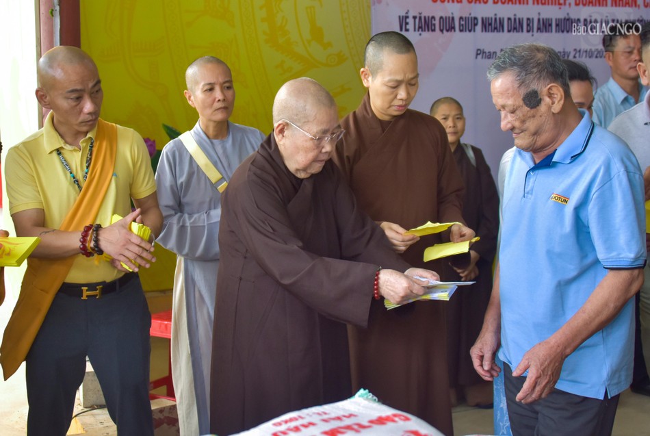 GNO - Theo đó, hôm nay, 21-10, Thượng tọa Thích Thanh Phong, Phó Chủ tịch Hội đồng Trị sự, Trưởng ban Kinh tế - Tài chính T.Ư, Trưởng ban Từ thiện xã hội Phật giáo TP.HCM đã dẫn đầu phái đoàn tặng quà đến người dân tại tỉnh Thái Nguyên - nơi chịu ảnh hưởng nặng nề bởi cơn bão số 10 và 11.