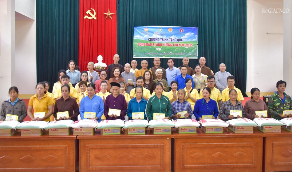 Phát biểu tại buổi trao quà, Thượng tọa Thích Tuệ Hải đại diện Thượng tọa Thích Thanh Phong, Phó Chủ tịch Hội đồng Trị sự, Trưởng ban Kinh tế - Tài chính T.Ư, Trưởng ban Từ thiện xã hội Phật giáo TP.HCM cho biết đây là ngày đầu tiên của chương trình từ thiện do Trung ương GHPGVN kết hợp các doanh nghiệp, mạnh thường quân tổ chức trao quà đến bà con bị ảnh hưởng bởi cơn bão số 10 và 11 vừa qua.