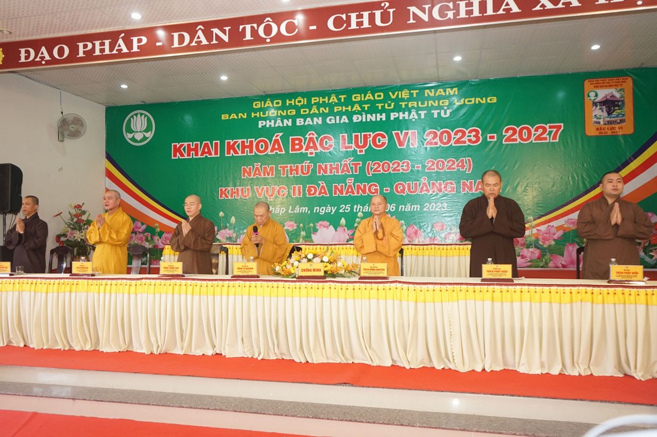 Tại hội trường chùa Pháp Lâm (Q.Hải Châu, TP.Đà Nẵng), Ban Điều hành bậc Lực T.Ư đã tổ chức lễ khai khóa cho các học viên bậc Lực VI khu vực II gồm Gia đình Phật tử Đà Nẵng và Quảng Nam.