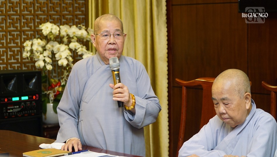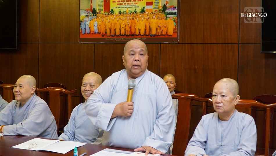 Ni trưởng Thích nữ Từ Nhẫn, Phó Trưởng Phân ban Ni giới T.Ư, Trưởng Phân ban Ni giới TP.HCM chủ trì buổi họp, đã phát biểu chào mừng chư Ni hiện diện để thông tin một số hoạt động Phật sự trọng tâm sắp tới nhằm Kính mừng ngày Đức Phật đản sinh; mong chư Ni đóng góp các ý kiến xây dựng để đóng góp cho thành tựu chung của Phật giáo TP.HCM.