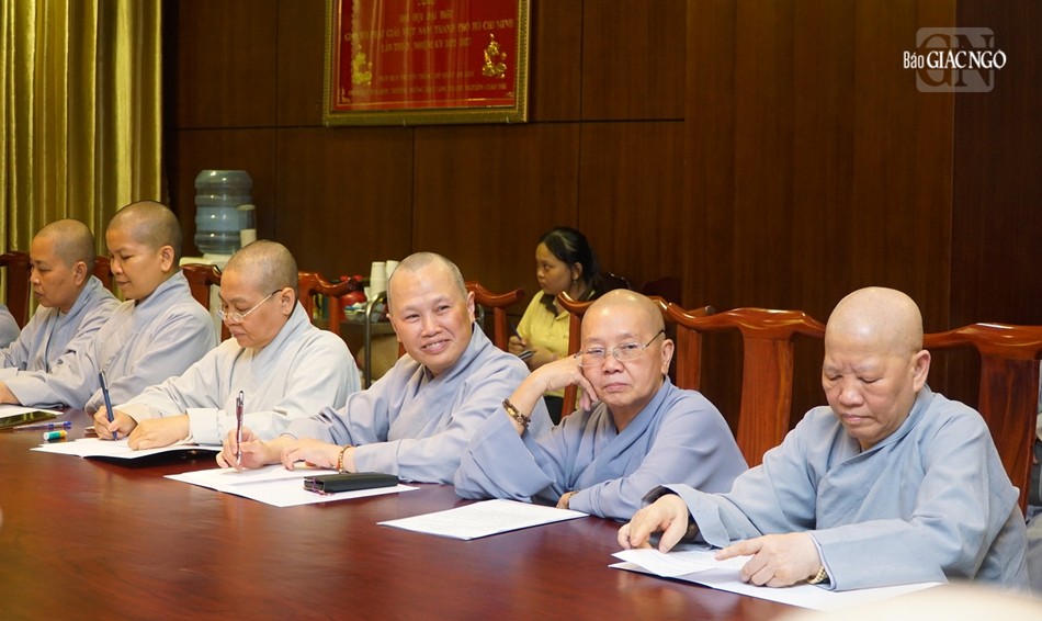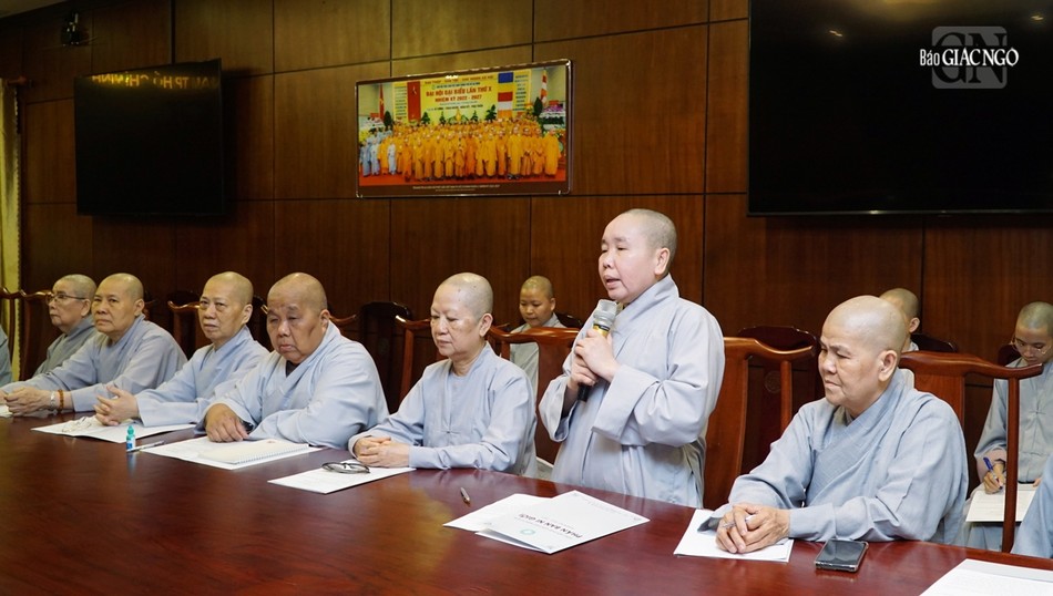 Đại diện chư Ni Phân ban Ni giới TP.HCM, TP.Thủ Đức, các quận huyện đã thảo luận, đóng góp ý kiến xây dựng hoạt động Phật sự của Ni giới TP.HCM, đặc biệt hướng đến chuẩn bị các hoạt động Phật sự trong Tuần lễ Phật đản kính mừng Đức Thế Tôn đản sinh.