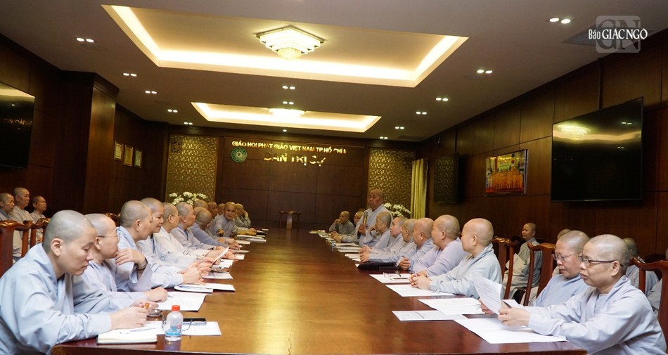 Tại buổi họp, Ni trưởng Trưởng Phân ban Ni giới TP.HCM đã trình tinh thần buổi họp của Ban Thường trực Ban Trị sự GHPGVN TP.HCM, ngày 8-4 vừa qua, tại Việt Nam Quốc Tự do Hòa thượng Thích Lệ Trang, Trưởng ban Trị sự GHPGVN TP.HCM chủ trì. Theo đó, Ni trưởng thông tin về chủ trương của Ban Trị sự GHPGVN TP.HCM về việc tổ chức Tuần lễ Phật đản tại TP.HCM và chuẩn bị cho mùa An cư kiết hạ Phật lịch 2568 của chư Tăng Ni toàn thành phố.