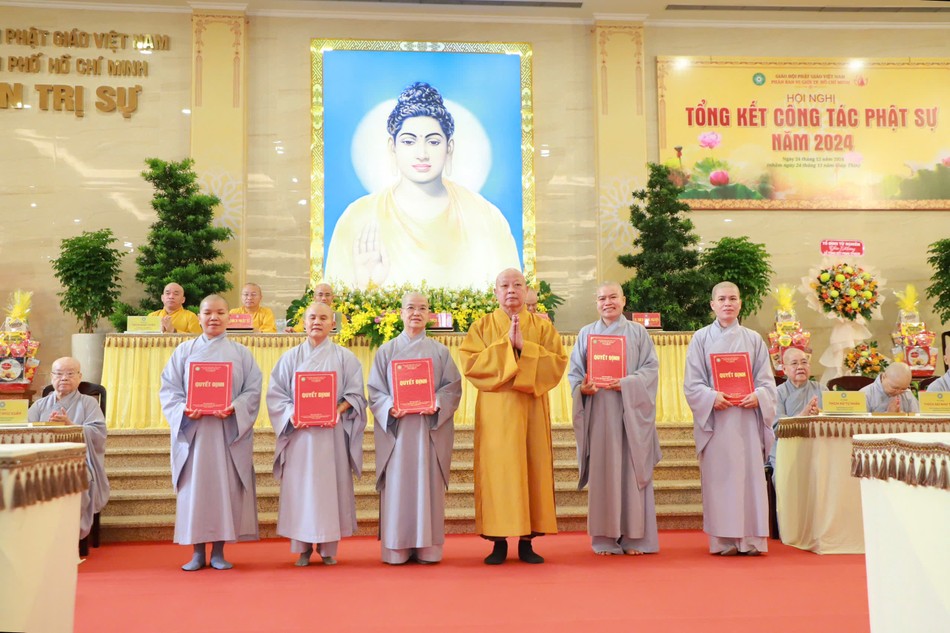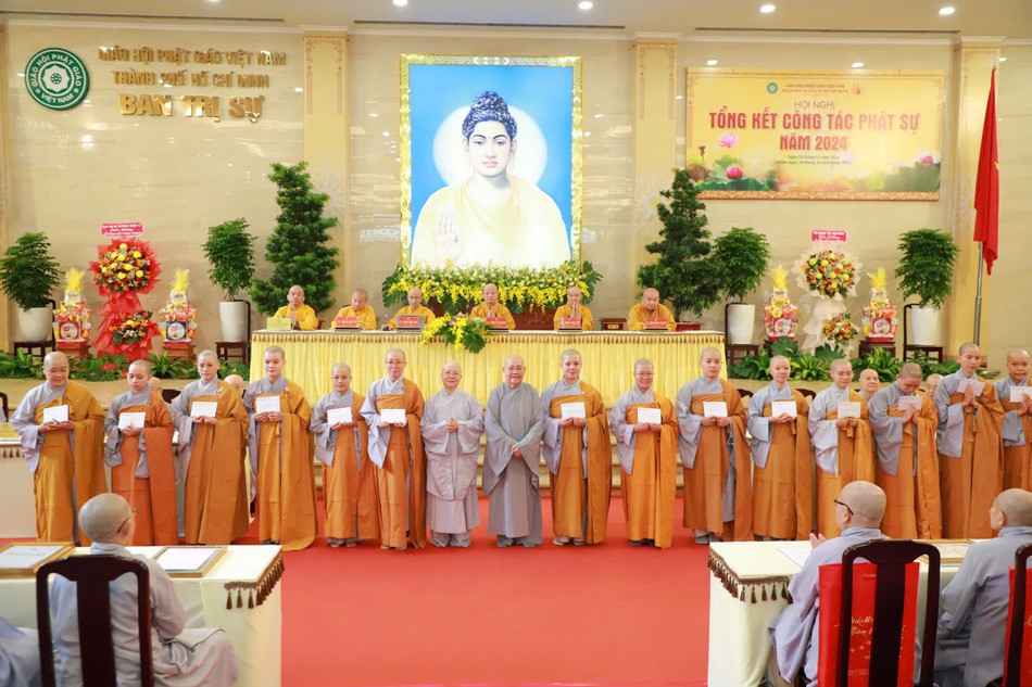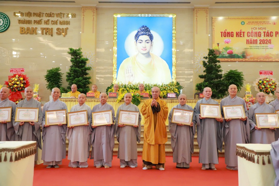 Ghi nhận sự đóng góp của chư Ni TP.HCM, Ban Thường trực Ban Trị sự TP.HCM đã trao tặng Bằng tuyên dương công đức đến 1 tập thể, Bằng công đức đến 21 tập thể và 37 cá nhân.
