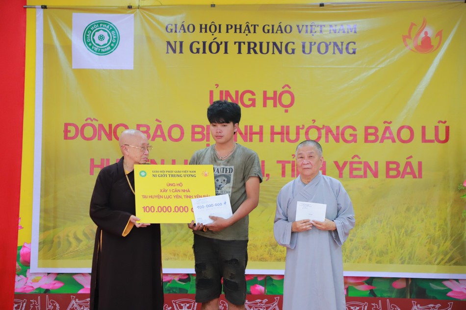 Chư Ni Phân ban Ni giới T.Ư đến thăm, trao quà tại xã An Phú tặng 100 gia đình, mỗi phần trị giá 1,5 triệu đồng tiền mặt và hỗ trợ một gia đình có nhà bị sập hoàn toàn 105 triệu đồng, trong đó 100 triệu đồng để xây dựng lại ngôi nhà mới và 5 triệu để trang trải những chi phí sinh hoạt trước mắt.
