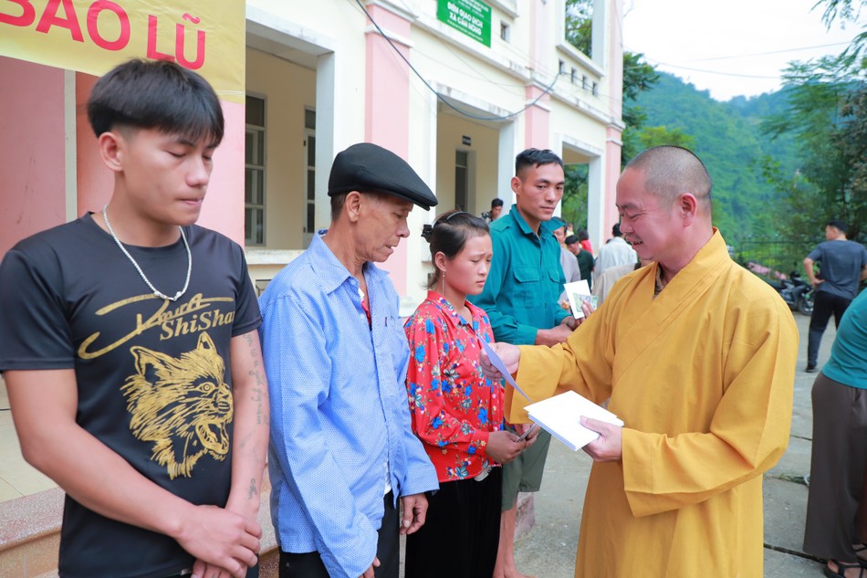 Đại đức Thích Thanh Hậu, Phó Chánh Thư ký kiêm Chánh Văn phòng Ban Trị sự GHPGVN tỉnh Cao Bằng, cùng các đại diện chính quyền bày tỏ tri ân sâu sắc trước sự sẻ chia của đoàn, từ miền Nam xa xôi.