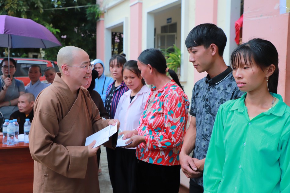 Ni trưởng Thích nữ Như Như trao quà đến bà con tỉnh Cao Bằng |