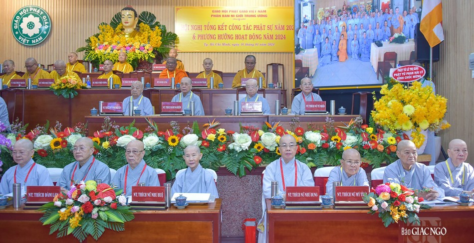 Hội nghị đã được xem video clip báo cáo hoạt động Phật sự năm 2023. Theo đó, hiện nay 56/63 Phân ban Ni giới tỉnh thành được thành lập, ra mắt 4 tiểu ban: Hướng dẫn Phật tử, hoằng pháp, pháp chế, từ thiện xã hội. Hoạt động Phật sự năm 2023, năm đầu tiên thực hiện Nghị quyết Đại hội IX GHPGVN, Phân ban Ni giới T.Ư hoàn thành khung nhân sự 13 tiểu ban trực thuộc và có nhiều thành tựu đáng khích lệ. Trong đó, hoạt động thường niên như: Tổ chức Đại lễ tưởng niệm Đức Thánh Tổ Ni Đại Ái Đạo (năm 2023) do Phân ban Ni giới tỉnh Bình Phước tổ chức trang nghiêm; tổ chức đoàn thăm, sách tấn, cúng dường các trường hạ Ni trong cả nước; hoạt động khánh tuế chư tôn giáo phẩm theo truyền thống Phật giáo; cùng nhiều hoạt động chuyên môn của các tiểu ban…