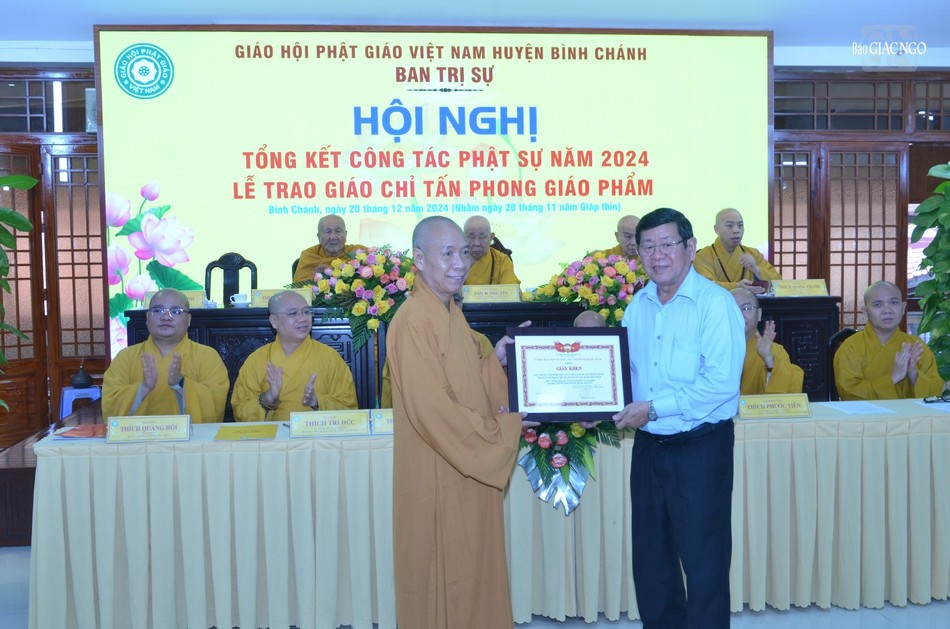 Dịp này, Ban Trị sự GHPGVN TP.HCM đã tặng Bằng tuyên dương công đức đến 1 tập thể và Bằng công đức đến 25 tập thể, 26 cá nhân; Ủy ban MTTQVN huyện trao Giấy khen đến 27 tập thể và 9 cá nhân có những đóng góp tích cực trong hoạt động Phật sự, từ thiện xã hội, góp phần xây dựng khối đại đoàn kết dân tộc.