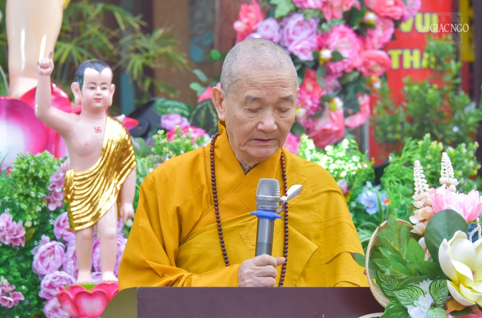 Sau khi ổn định đạo tràng, toàn thể đại chúng lắng lòng nghe Trưởng lão Hòa thượng Thích Thanh Hùng tuyên đọc Thông điệp Đại lễ Phật đản Phật lịch 2568 của Đức Pháp chủ GHPGVN gửi đến toàn thể Tăng Ni, Phật tử; Thượng tọa Thích Minh Quang, Trưởng ban Trị sự Phật giáo Q.1 đọc Diễn văn Phật đản của Trưởng lão Hòa thượng Chủ tịch Hội đồng Trị sự GHPGVN.
