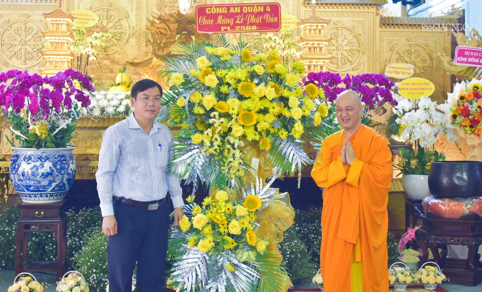 Chứng minh, tham dự buổi lễ có Trưởng lão Hòa thượng Thích Tịnh Hạnh, Thành viên Hội đồng Chứng minh, Chứng minh Ban Trị sự GHPGVN TP.HCM; chư vị Hòa thượng trong Ban Chứng minh GHPGVN Q.4; Thượng tọa Thích Minh Bảo, Trưởng ban Trị sự Phật giáo quận; các vị trong Ban Trị sự Q.4, Q.Phú Nhuận, Q.10 và đông đảo Tăng Ni, Phật tử các tự viện trên địa bàn.