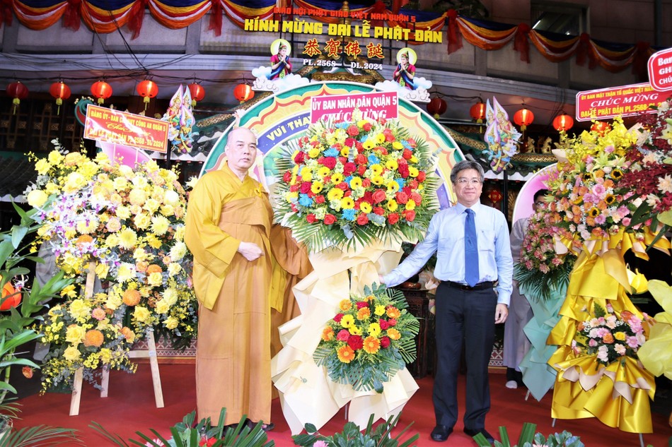 GNO - Chiều nay, 10-4-Giáp Thìn (17-5), Ban Trị sự GHPGVN Q.5 đã trang nghiêm tổ chức Đại lễ Phật đản Phật lịch 2568 tại lễ đài chính của Phật giáo quận - chùa Vạn Phật, với sự tham dự của Tăng Ni, Phật tử và đại diện chính quyền các cấp trên địa bàn.