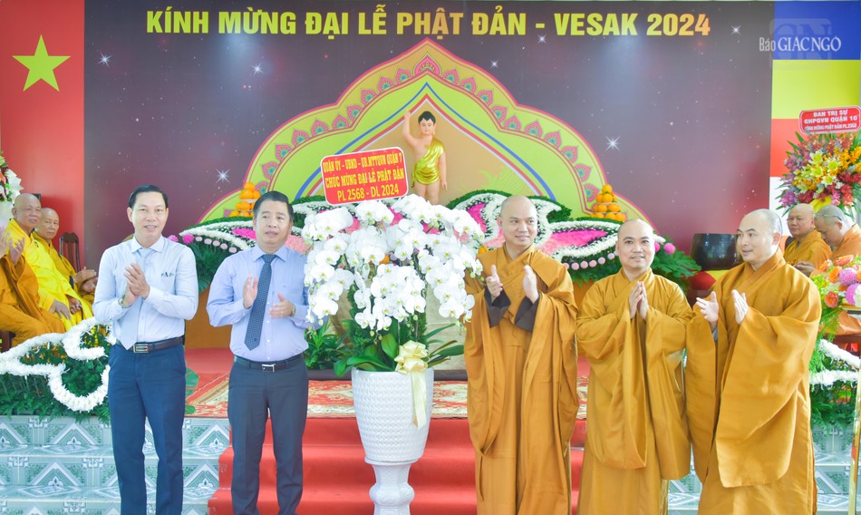 Nhân sự kiện Đại lễ Phật đản Phật lịch 2568 của Phật giáo Q.7, ông Nguyễn Dũng Hùng, Chủ tịch Ủy ban MTTQVN Q.7 thay mặt lãnh đạo chính quyền có lời chúc mừng đến toàn thể Tăng Ni, Phật tử quận. Qua đây, ông cũng gửi lời cám ơn đến Ban Trị sự và các tự viện trên địa bàn đã hưởng ứng các phong trào do chính quyền địa phương phát động, hỗ trợ chăm lo cho người dân trên địa bàn thời gian qua.