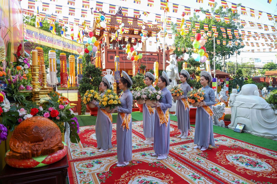 Sau ba hồi chuông trống Bát-nhã, chư tôn giáo phẩm đã thành kính dâng hương cúng dường, đảnh lễ Tam bảo, đồng tụng sám Khánh đản kính mừng ngày Đức Phật Thích Mâu Ni đản sinh và thả bong bóng cầu nguyện thế giới hòa bình.