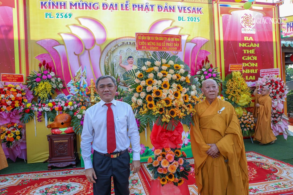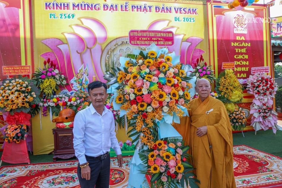 Trước đó, Sở Dân tộc và Tôn giáo TP.HCM, lãnh đạo chính quyền Q.Bình Tân đã đến thăm, tặng quà chúc mừng Đại lễ Phật đản Phật lịch 2569 đến chư tôn đức Ban Trị sự GHPGVN Q.Bình Tân.