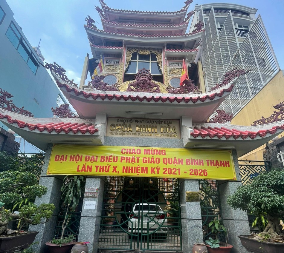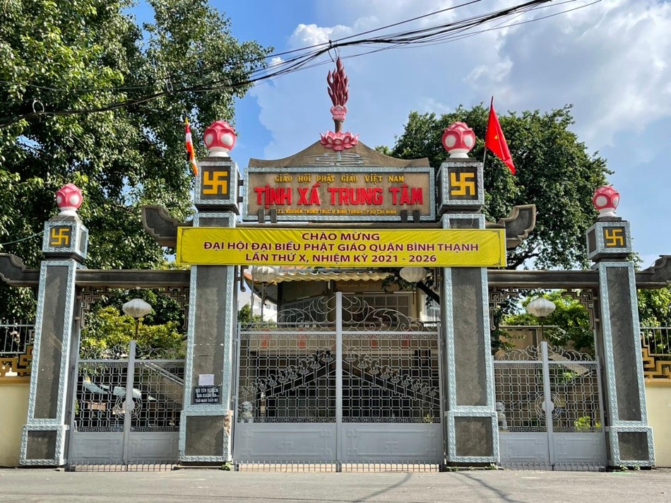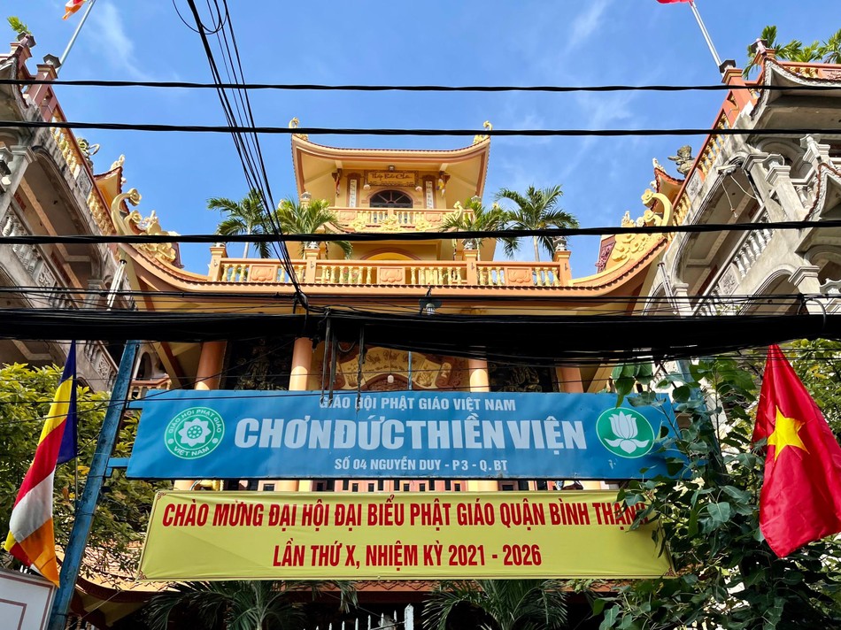 Trước cổng chùa Dược Sư - nơi diễn ra Đại hội đại biểu Phật giáo quận Bình Thạnh nhiệm kỳ 2021-2026 |