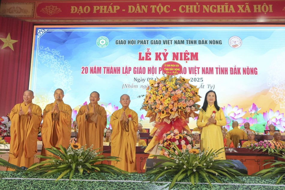 Đại diện lãnh đạo tỉnh nhà, bà Tôn Thị Ngọc Hạnh, Phó Chủ tịch UBND tỉnh Đắk Nông đã có lời phát biểu chúc mừng và đặt nhiều niềm tin vào GHPGVN tỉnh Đắk Nông, cùng Tăng Ni, Phật tử trong tỉnh sẽ tiếp tục thể hiện vai trò, uy tín của mình trong việc tăng cường xây dựng khối đại đoàn kết toàn dân tộc, đoàn kết các tôn giáo; chú trọng nắm bắt tâm tư, nguyện vọng và quan tâm chăm lo đời sống vật chất, tinh thần cho đồng bào Phật giáo nhất là đồng bào có hoàn cảnh khó khăn; tiếp tục thực hiện các hoạt động Phật sự theo phương châm “Đạo pháp - Dân tộc - Chủ nghĩa xã hội”; tích cực hưởng ứng các phong trào thi đua yêu nước, phát triển kinh tế - xã hội và hướng dẫn, vận động Tăng Ni, Phật tử tỉnh nhà hoạt động tôn giáo thuần túy, chấp hành tốt đường lối, chủ trương của Đảng, chính sách, pháp luật của Nhà nước, chung tay cùng các cấp chính quyền, Mặt trận Tổ quốc, các đoàn thể và nhân dân xây dựng tỉnh Đắk Nông có chất lượng sống tốt, văn minh, hiện đại, nghĩa tình.