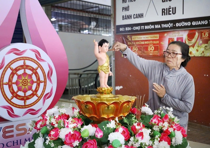 GNO - Sáng 3-5 (6-4-Ất Tỵ), nằm trong chuỗi các sự kiện kính mừng Phật đản Phật lịch 2569 - Dương lịch 2025, Thường trực Ban Trị sự GHPGVN TP.Buôn Ma Thuột (tỉnh Đắk Lắk) trang trọng cử hành Lễ tắm Phật tại các điểm công cộng như Mega Market (siêu thị Metro) và 2 điểm quanh chợ Buôn Ma Thuột.