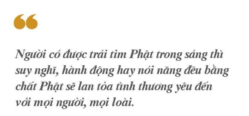 Mặt trái của một xã hội phát triển là suy thoái đạo đức. Đời sống hưởng thụ lên ngôi thì các giá trị văn hóa, tình người bị thay thế bởi lòng đố kỵ, hẹp hòi, ích kỷ. Xã hội đang rất cần những ánh mắt cảm thông và trái tim thiện lành. Người có được trái tim Phật trong sáng thì suy nghĩ, hành động hay nói năng đều bằng chất Phật sẽ lan tỏa tình thương yêu đến với mọi người, mọi loài.