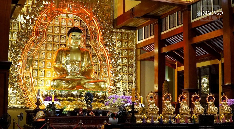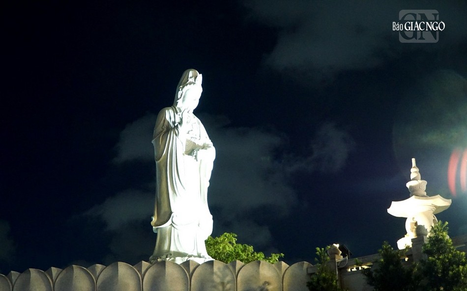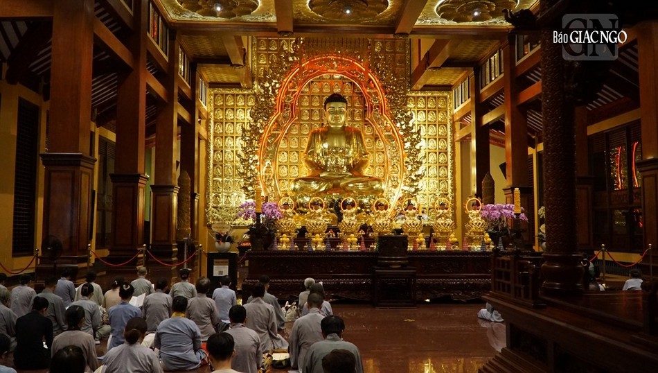 Tại chánh điện Việt Nam Quốc Tự, Phật tử trang nghiêm tham gia thời khóa tối, cùng với đó tại sảnh trước Việt Nam Quốc Tự, Phật tử tùy duyên hướng về tôn tượng Đức Quán Thế Âm cùng nhau nhất tâm trì tụng trong khóa lễ.