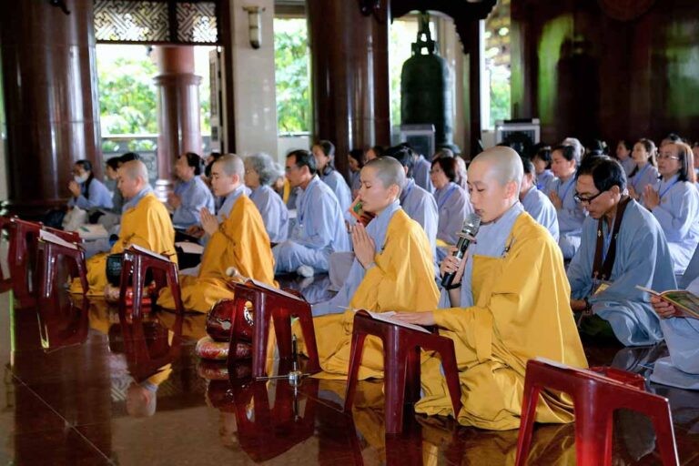 Theo đó, khóa tu diễn ra trang nghiêm với các thời khóa: niệm Phật, tụng kinh, tọa thiền, thọ trai trong chánh niệm. Trong thời thuyết pháp, Thượng tọa Thích Đức Trường đã chia sẻ, giúp chư hành giả hiểu thêm về Đức Địa Tạng vương Bồ-tát và vai trò của ngài trong kinh tạng.
