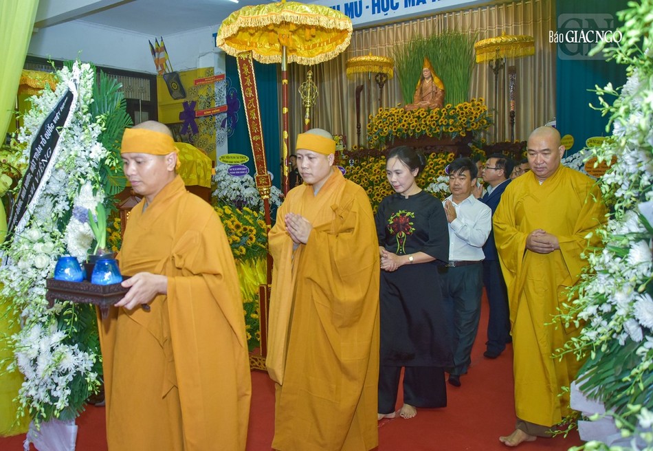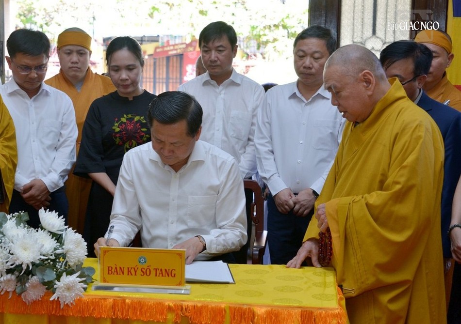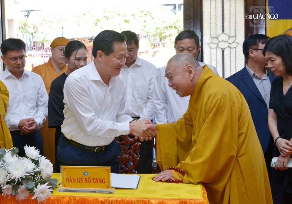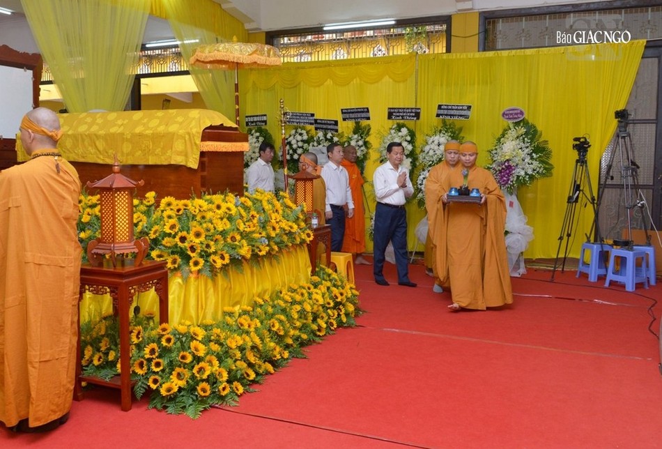 Sau khi phái đoàn hữu nhiễu kim quan, Phó Thủ tướng Chính phủ Lê Minh Khái đại diện phái đoàn ghi sổ tang lưu niệm, phân ưu cùng GHPGVN và Ban Tổ chức lễ tang cùng môn đồ pháp quyến.