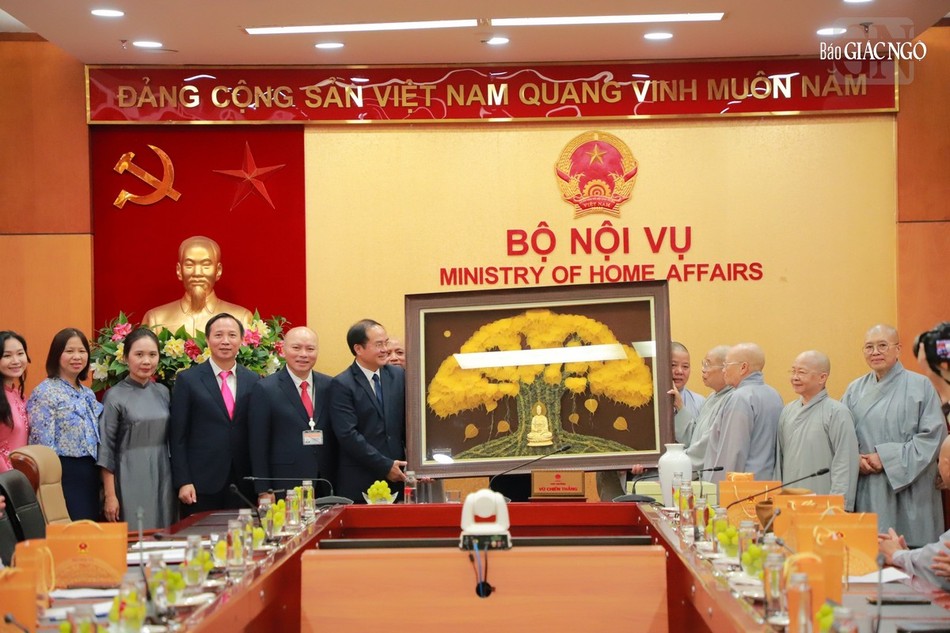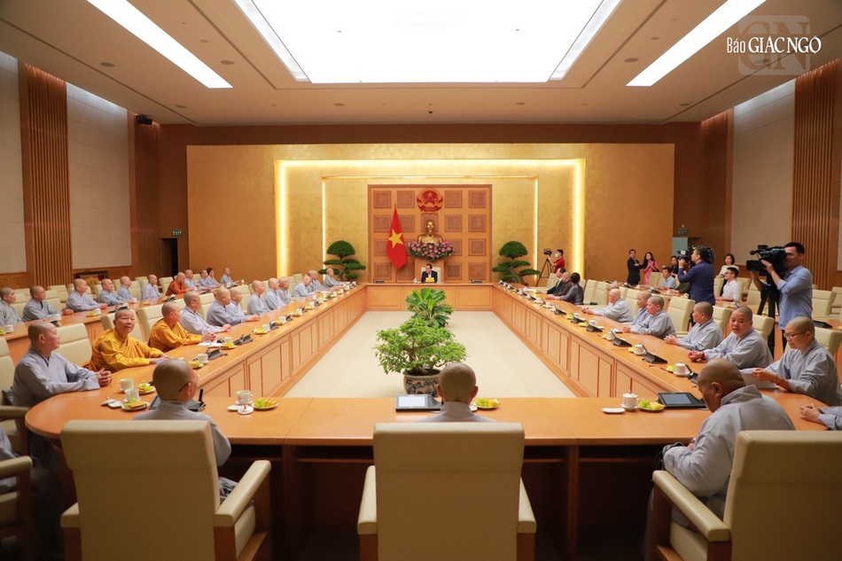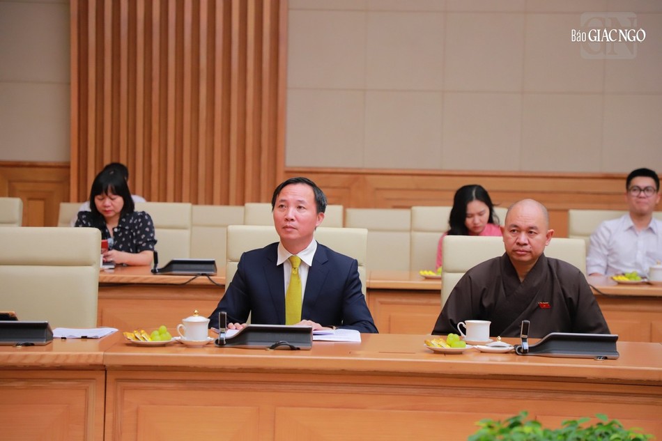 Tiếp đoàn chư Ni còn có ông Vũ Chiến Thắng, Thứ trưởng Bộ Nội vụ; ông Cao Huy, Phó Chánh Văn phòng Chính phủ; ông Vũ Hoài Bắc, Trưởng ban Tôn giáo Chính phủ, cùng các vị đại diện Văn phòng Chính phủ.