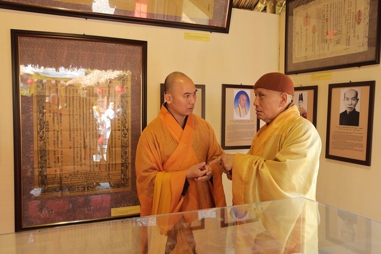Những tác phẩm được trưng bày lần này gồm: nhiều kinh sách cổ quý hiếm, các mộc bản, và các vật dụng thường nhật của chư vị Tổ sử,… Ngoài ra, còn trưng bày giới thiệu hành trạng chư vị tôn đức khai sáng thiền phái như: ngài Minh Hải - Pháp Bảo, Hòa thượng Thích Quảng Đức...