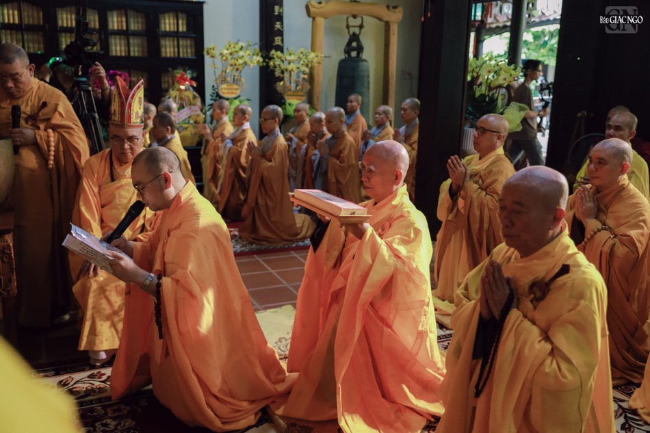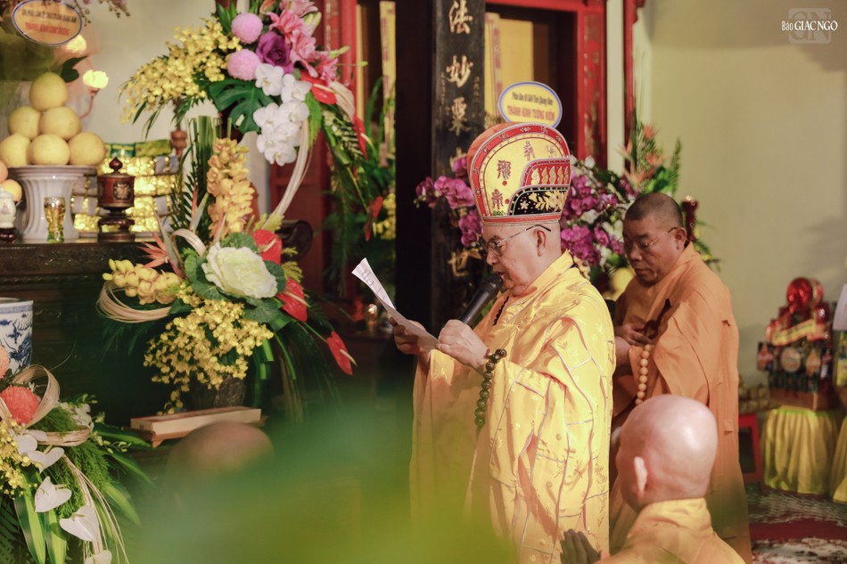 Nơi tổ đường tổ đình Chúc Thánh, Hòa thượng sám chủ cùng chư tôn đức Ban Kinh sư đã cử hành nghi thức chúc tán, cung tiến Giác linh Tổ sư Minh Hải Pháp Bảo và lịch đại Tổ sư, cầu nguyện cho Đạo pháp trường tồn, chúng sinh an lạc.