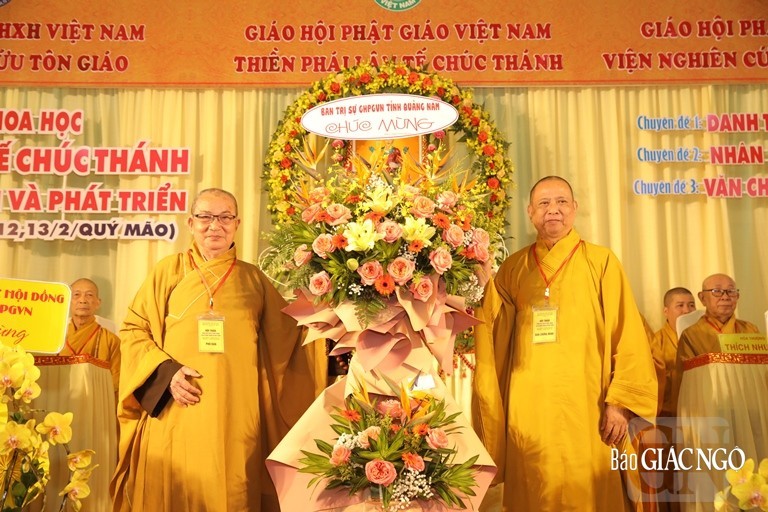 Tại lễ khai mạc, nhiều lẵng hoa cũng đã được gởi đến chúc mừng hội thảo của Thiền phái Chúc Thánh sáng nay.