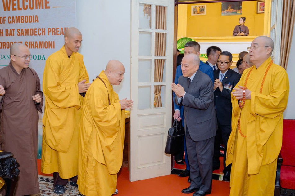 Trưởng lão Hòa thượng thay mặt Tăng Ni, Phật tử Việt Nam chúc Quốc vương Norodom Sihamoni thân tâm an khang, trí tuệ anh minh, trị vì đất nước Campuchia và chăm lo cho nhân dân Campuchia phồn vinh, thịnh vượng; chúc chuyến thăm hữu nghị Việt Nam lần này của Quốc vương Norodom Sihamoni thành công rực rỡ; chúc quan hệ láng giềng tốt đẹp, hữu nghị truyền thống, hợp tác toàn diện, bền vững lâu dài giữa Việt Nam - Campuchia ngày càng tốt đẹp, mãi mãi bền vững.