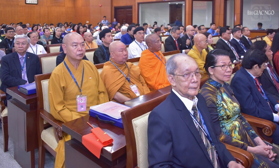 Đại biểu Đại hội cũng xem những ghi hình các ý kiến, đề xuất, kiến nghị, đóng góp của đại diện các tổ chức chính trị xã hội, các tầng lớp nhân dân, đại diện tôn giáo, dân tộc... qua phim "MTTQVN TP.HCM - nơi trao gởi niềm tin".