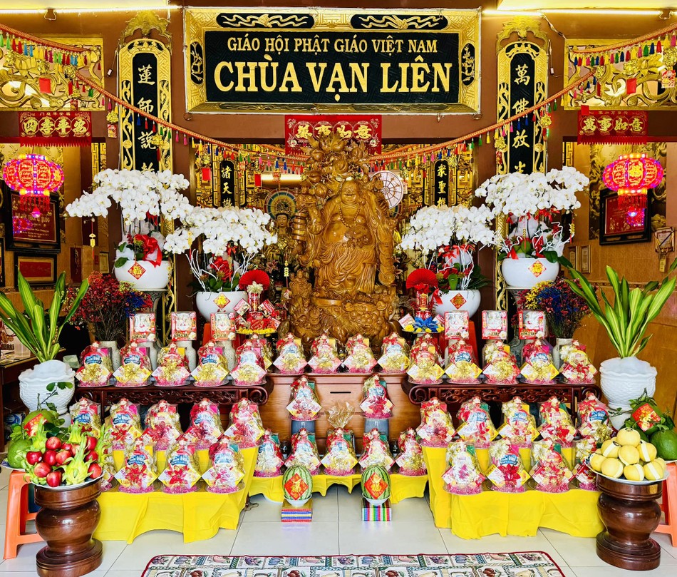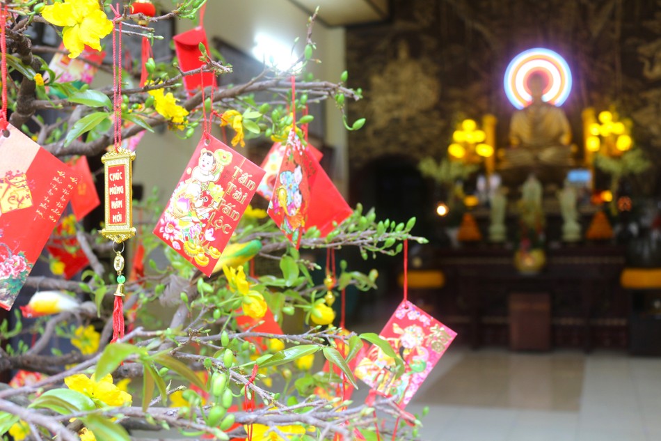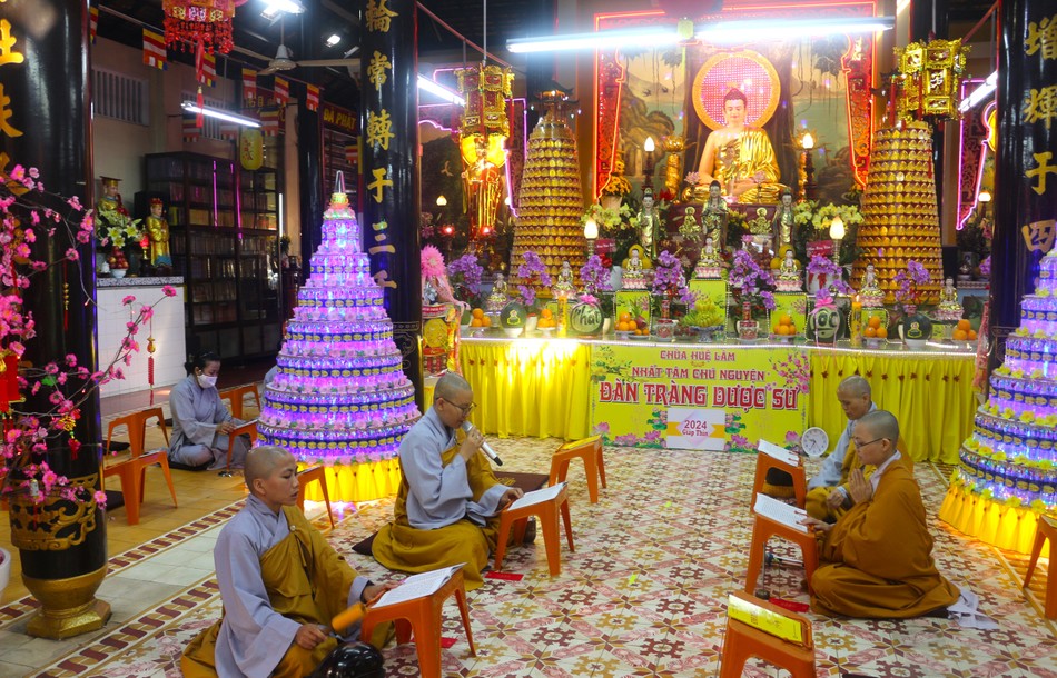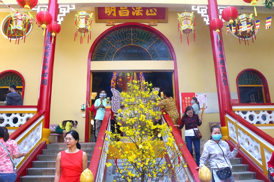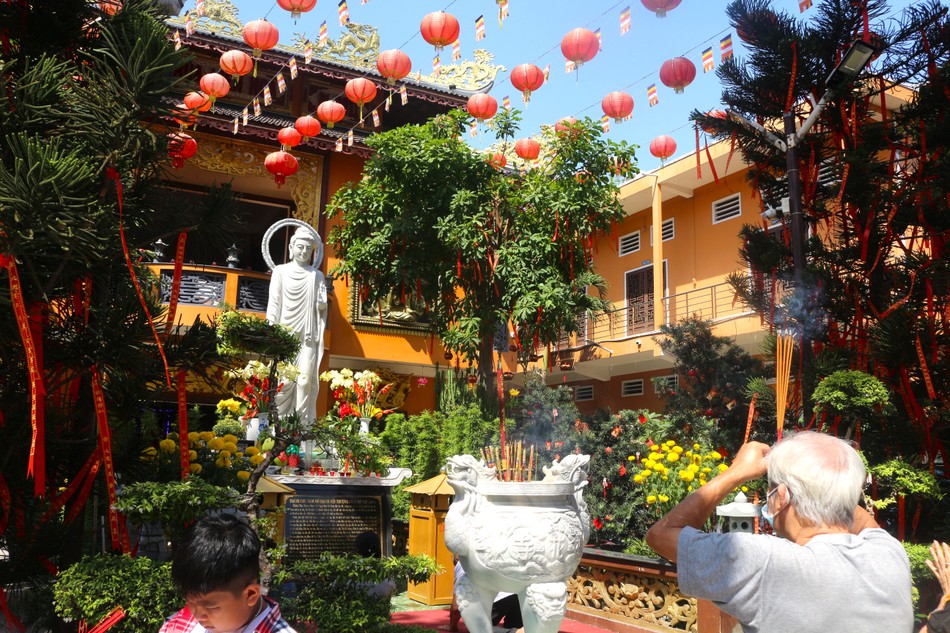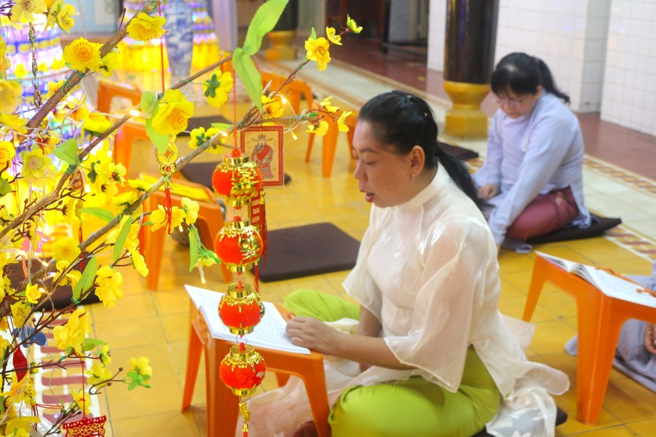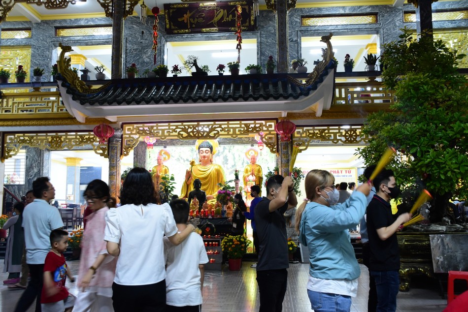 | Người dân dâng hương lễ Phật trong đêm giao thừa |