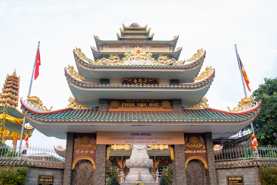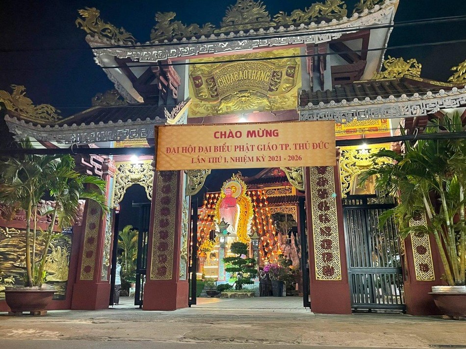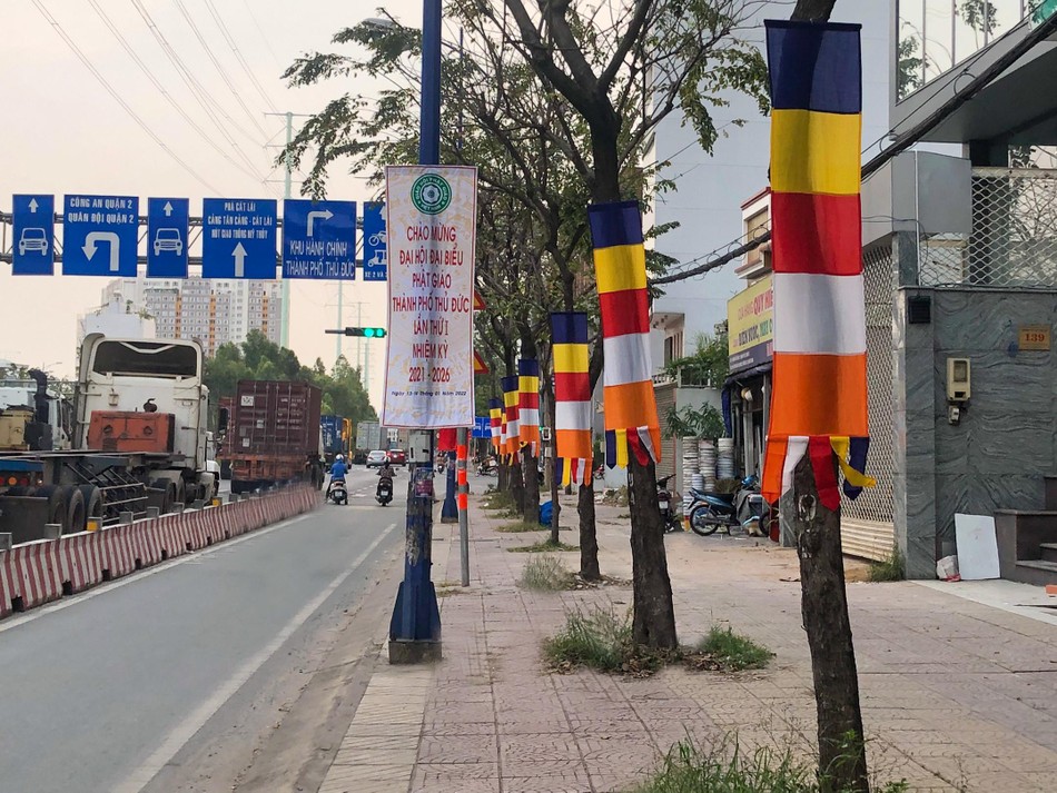 Bên cạnh đó, các tự viện trên địa bàn đã đồng bộ treo cờ, băng rôn chào đón sự kiện quan trọng đầu tiên của Phật giáo TP.Thủ Đức.